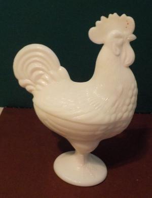 VINTAGE MILK GLASS ROOSTER DISH NO BRA     Completed    $3.25