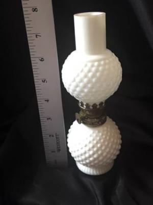 VINTAGE MILK GLASS HOBNAIL OIL LAMP TABLE     Completed    $3.24