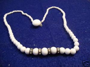VINTAGE MILK GLASS BEAD NECKLACE     Completed    $3.13