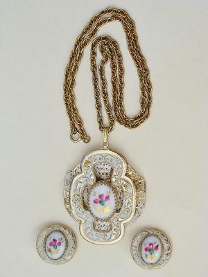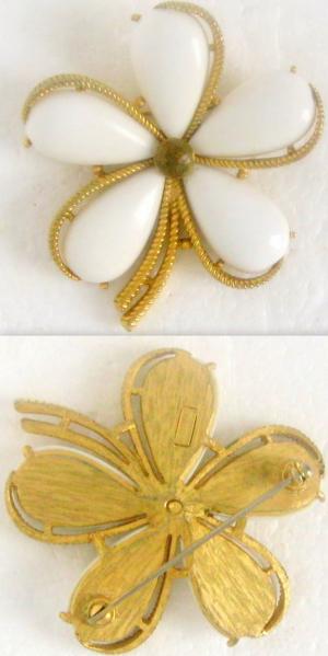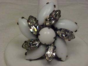 Vintage Milk Glass and Rhinestone Flower Brooch     Completed    $3.15