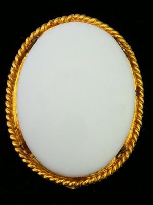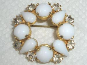 AUSTRIA Vintage Milk Glass Rhinestone Brooch Pin     Completed    $3.16