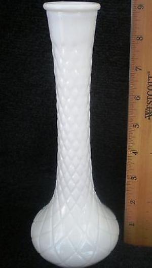 Vtg 9" Milk Glass Vase Diamond Quilt #4092     Completed    $3.2