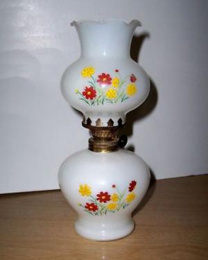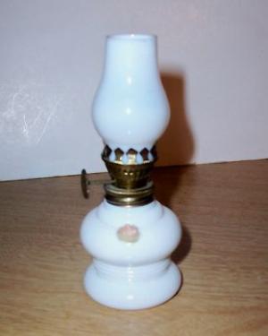 Minature Kerosene Oil Lamp -WHITE-MILK GLASS-     Completed    $3
