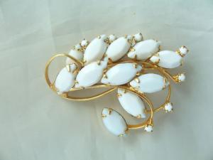 Vintage White Milk Glass Filigree Cameo Pin     Completed    $3