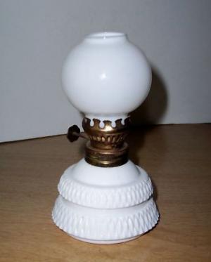 Minature Kerosene Oil Lmp -WHITE-MILK GLASS-     Completed    $3