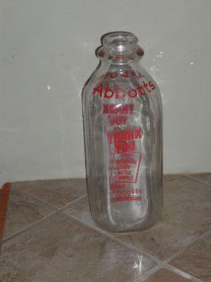 Abbotts Glass Milk Bottle with Red Lettering     Completed    $3