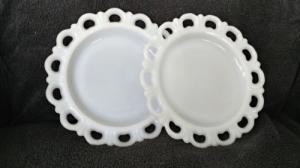 SET OF MILKGLASS PLATES WITH FILIGREE EDGING     Completed    $3