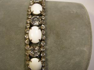 Vintage White Milk Glass Brooch Singed Monet     Completed    $3