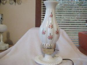 MILK GLASS HURRICANE CERAMIC MINI OIL LAMP     Completed    $2.99