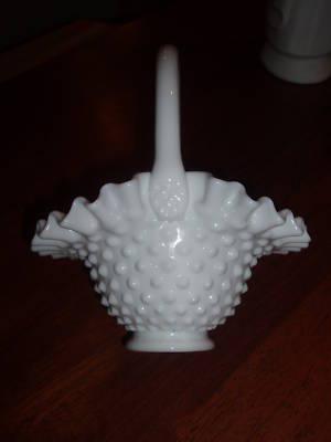 FENTON HOBNAIL BASKET WHITE MILK GLASS     Completed    $2.99