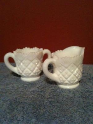 Milk glass diamond pattern mini creamer/sugar     Completed    $2.99