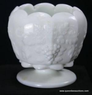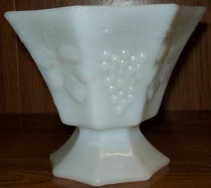 GRAPES & LEAVES MILK GLASS OCTAGON COMPOTE DISH     Completed    $2.99