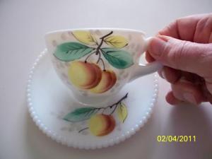 Westmoreland Beaded Milk Glass Cup Saucer Peaches     Completed    $2.99
