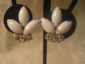 Vtg Milk Glass & Aurora Borealis Clip On Earrings     Completed    $2.99