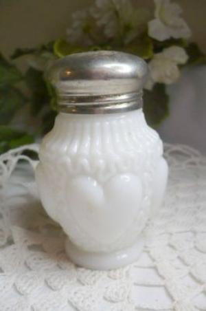 EAPG RUFFLED HEART BLOW MOLD MILK GLASS SHAKER     Completed    $2.99