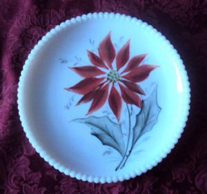 VINTAGE BEADED MILK GLASS POINTSETTE PLATE     Completed    $2.99