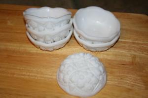 6 PRESS CUT White Milk Glass Berry Bowls     Completed    $2.99