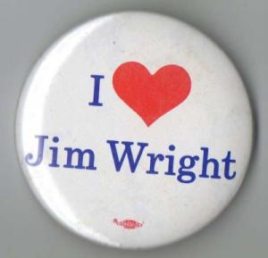 Jim Wright campaign button pin 1990s Texas     Completed    $0.99