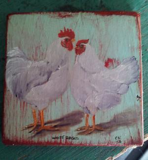 PRIMITIVE CHICKEN PAIR ON OLD WOOD     Completed    $9.99