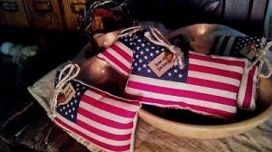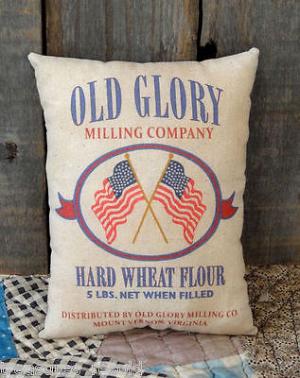 PRIMITIVE GRUNGY OLD GLORY FLAG FEED SACK PILLOW     Completed    $8.95