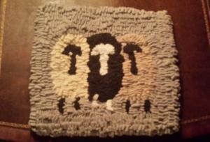 Handmade Primitive Sheep Hooked Rug ***Prim     Completed    $7.99
