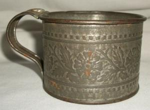 Vintage Floral Embossed Tin Cup Primitive Antique     Completed    $7.95