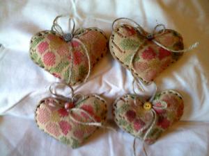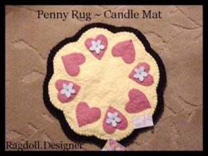 Handcrafted Penny Rug ~ Candle Mat Mauve Hearts     Completed    $7.5