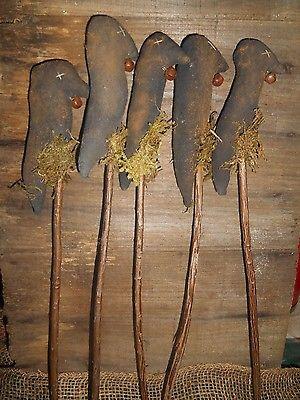 Primitive Fall Black Crow Ornie Pokes - Set Of 6     Completed    $7.34