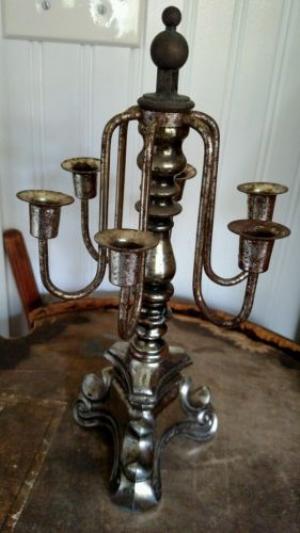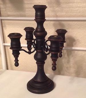 PRIMITIVE WOODEN CANDLEABRA, CANDLE KEEP     Completed    $6.99
