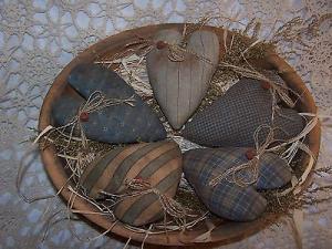 Primitive heart bowl fillers grungy Blue set of 5     Completed    $6.99
