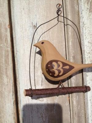 Folk Art Carved Wooden Bird on Swing     Completed    $6.5