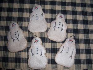 Primitive stitchery SNOWMAN ornaments ornies *5*     Completed    $6.5