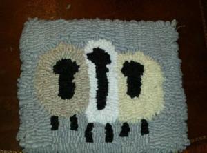 Handmade Primitive Sheep Hooked Rug****Prim     Completed    $5.99