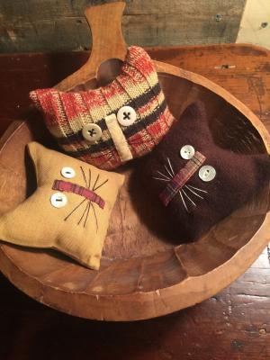 Primitive Old Home Cats Bowl Fillers Set of 3     Completed    $5.24