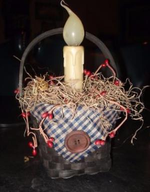 PRIMITIVE CANDLE HOLDER WITH LIGHT/BERRIES #1     Completed    $4.99