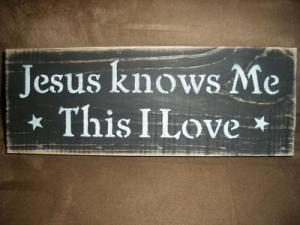 Primitive Wood Sign "JESUS KNOWS ME THIS I LOVE"     Completed    $4.99