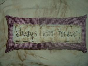 PRIMITIVE STITCHERY PILLOW-ALWAYS AND FOREVER     Completed    $4.99