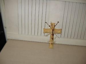 Vintage Primitive Jesus On Cross Wood And Brass     Completed    $4.5