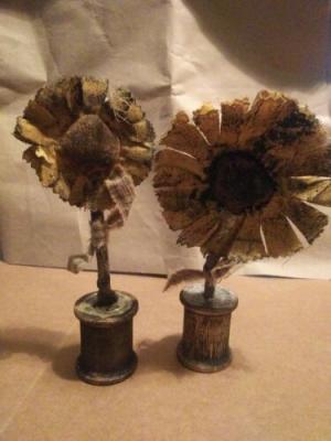Primitive Handmade Sunflowers on wooden spool     Completed    $4.5