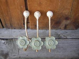 3 PRIMITIVE HAT / COAT HOOKS w/ FLOWER ENDS     Completed    $4.28