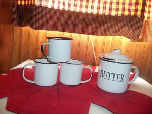 White galvenized butter bowl and three cups     Completed    $4.25