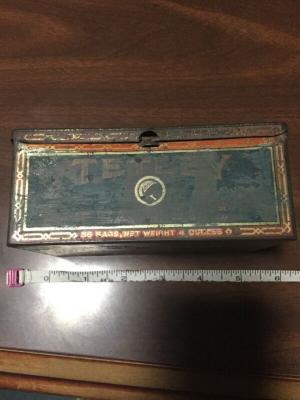 antique Tetley tea tin, green, gold trim     Completed    $3.99