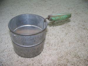 AntiqueFlour Sifter with green wood handle     Completed    $3