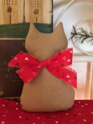 Primitive Valentine Cat Red Bow Bowl Filler Tuck     Completed    $2.99