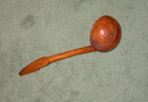 Old hand-carved wooden ladle, 14" long     Completed    $1