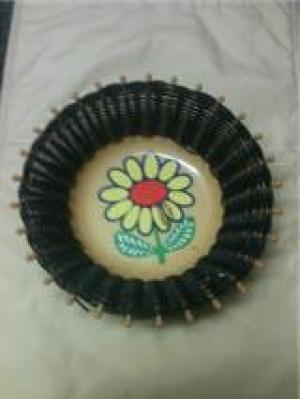 Vintage Wicker & Melamac Colorful Flowered Basket     Completed    $0.99