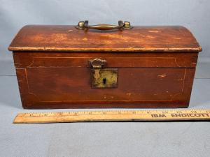ANTIQUE PAINT DECORATED LIDDED WOODEN BOX     Completed    $0
