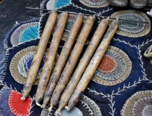 Six Handmade Primitive Candles on a metal Rod     Completed    $0