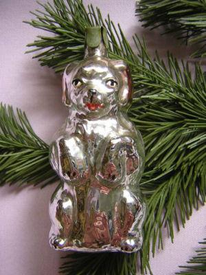 OLD RUSSIAN GLASS CHRISTMAS ORNAMENT DOG     Completed    $9.99