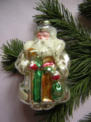 OLD RUSSIAN GLASS CHRISTMAS ORNAMENT SANTA CLAUS     Completed    $7.5